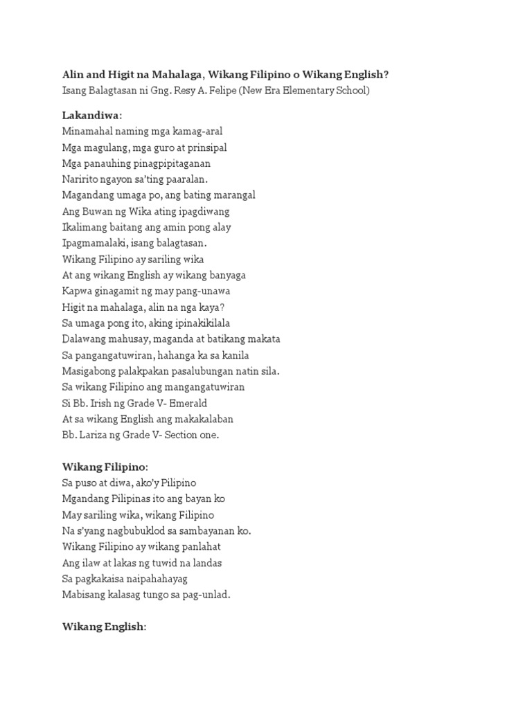 Nabubuo ang mga makabuluhang tanong batay sa napakinggang palitan ng katuwiran. Contextual translation of balagtasan tungkol sa pilipino into English. Sukat tawag sa bilang ng mga pantig sa bawat taludtod ng tula.