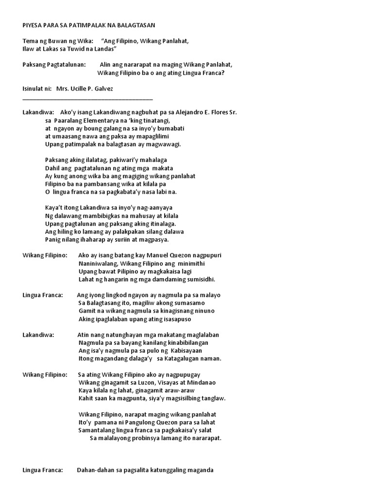 Piyesa Para Sa Patimpalak Na Balagtasan Pdf