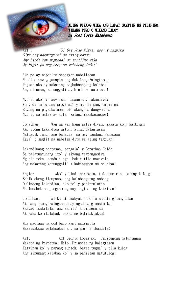 Text by Loretta G. Buwan ng Wika 2019 Balagtasan. Skip to main content.